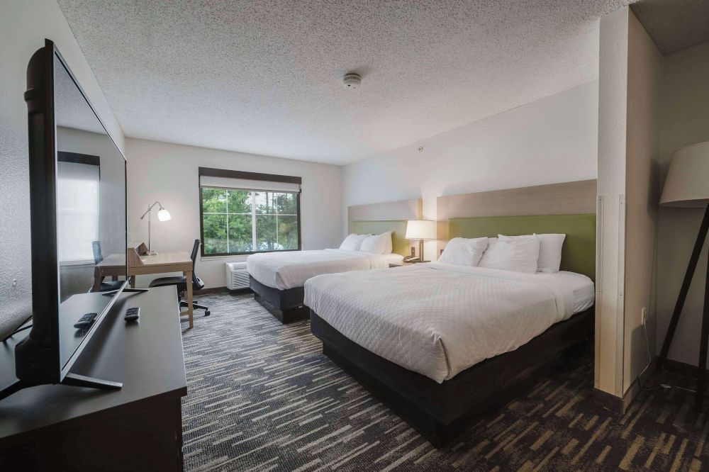 丽笙纽约州乔治湖昆斯伯里乡村套房酒店位于昆士贝利,在购物区,距离六旗大逃亡主题公园只有 1 分钟车程,且距离乔治湖也只有 8 分钟车程。 此酒店距离海盗湾探险高尔夫球场 0.2 英里(0.3 公里),距离Adventure Racing Family Fun Center (冒险赛车家庭娱乐中心) 0.2 英里(0.4 公里)。您可享受室内游泳池、健身中心和季节性开放的室外游泳池等丰富度假设施。此酒店还提供免费 WiFi、公共区电视和旅游/票务服务。每日 06:30 至 10:30 提供免费的外带式早餐。特色服务/设施包括免费高速有网上网、商务中心和快速退房。酒店提供免费自助停车。有 83 间特色装修的客房提供冰箱和平板电视;您定能在旅途中找到家的舒适。您的加厚层卧床备有高档床上用品。提供免费有线和无线上网,方便您与朋友保持联系;另提供有线频道,可满足您的娱乐需求。配备淋浴/盆浴组合的私人浴室提供大花洒淋浴喷头和免费洗浴用品。